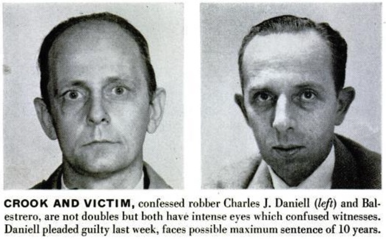 Árið 1957 var gjöfult fyrir Henry Fonda en þá lék hann í einni bestu mynd allra tíma, 12 Angry Men, sló líka í gegn í The Tin Star ásamt Anthony Perkins og svo lék hann í The Wrong Man fyrir Hitchcock sem var ekki sótt í annað skáldverk eins og flestar myndir Alfreðs heldur grein í tímaritinu Life og birtist Hitchcock í upphafi myndarinnar og segir okkur að þetta sé sönn saga; svipuðu hlutverki gegndi hann í sjónvarpsmyndaflokknum Alfred Hitchcock Presents (1955–1965) en þar leikstýrði hann þó aðeins 18 þáttum af alls 361. Fann hann kannski upp sannraglæpahlaðvörpin sem núna eru eitt vinsælasta frásagnaform heimsins? Sagan fjallar um Christopher „Manny“ Balestrero (1909–1998), tónlistarmann sem var sakaður um vopnað rán vegna þess að hann líktist hinum seka (eins og sjá má að neðan). Atriðið þegar konurnar á skrifstofunni þykjast bera kennsl á hann sem leiðir til ógæfunnar er eitt hið áhrifamesta í myndinni, þar fáum við að sjá hinn blásaklausa Manny með augum annarra. Síðan sjáum við lögguna tuddast á manngreyinu, býsna algeng saga í myndum nútímans en óvenjuleg á þessum tíma þannig að kannski er The Wrong Man sú mynd Hitchcocks sem vísar mest til nútímans.