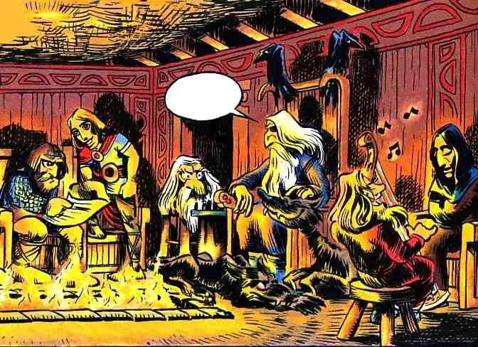 Þriðja bókin í röðinni, Veðmál Óðins, birtist í Billed-Bladet árið 1982 og mig minnir að við höfum klippt út síðurnar og búið til okkar eigið hefti. Þar voru bræður Óðins Vilji og Vé áberandi en einnig er unnið með söguna um Ragnar loðbrók sem ég kynntist þar í fyrsta sinn og eins söguna í Hárbarðsljóðum. Ásamt Madsen og Kure var Hans Rancke-Madsen (1956–2015) textahöfundur og fléttan er haganleg og snjöll. Í fyrstu bókinni, Úlfurinn bundinn, eru Þjálfi og Röskva í öndvegi og sjónarhornið hjá þeim. Ef til vill höfðu vinsældir bókarinnar á Íslandi áhrif á íslenska stúdentapólitík og sannarlega man ég enn myndina af því þegar Þjálfi „braut til mergjar“ bein sem óviturlegt var að brjóta.
