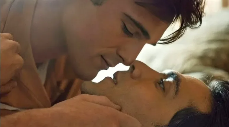 On Swift Horses er ein af betri myndum ársins 2024 en ég rambaði eiginlega á hana fyrir tilviljun á vod-inu. Hún sækir í skáldsögu Shannon Pufahl (f. 1979) sem vakti mikla athygli sumra fyrir snjalla endurritun vesturferðaminnisins yfir Ameríku þvera án þess þó að gera höfund sinn almennt frægan. On Swift Horses er sannarlega ástarsaga en meginparið í myndinni eru eiginkona og mágur hennar á árunum rétt upp úr stríði; þau eru hvort á sínu ferðalagi vestur á bóginn þar sem saman fara veðmál, svik og óhefðbundin ást. Hinn fjallmyndarlegi Jacob Elordi úr Saltburn leikur máginn Julius sem sést fyrst ber að ofan á bílhúddi þó að föl sé á jörðu og er síðan í aðalhlutverki í ýmsum sveittum ástarsenum (sjá að neðan) ásamt félaga sínum í svindlinu sem er leikinn af Diego Calva úr Leyndarmáli árinnar. Samband þeirra er fallegasti og sterkasti hluti myndarinnar. Sumum finnst Elordi aldrei hafa leikið betur og hlutverkið reynir sannarlega á hann. Mágkonan Muriel er svo á eigin ferðalagi með eiginmanninum sem skilur hana ekki (hinn ágæti enski leikari Will Poulter sem er samt mjög bandarískur að sjá og heyra hér) en hún hittir síðan Söndru sem selur henni egg og hrífur hana svo að hún fer á lesbíuslóðir í nágreinninu til að leita Söndru milli þess sem hún gerist handgengin hrossaveðmálum. Myndin minnir talsvert á hinar flottu raunsæismyndir 8. áratugarins sem ég skrifaði um fyrir nokkru og gaman að vita að enn séu slíkar gerðar. Einnig hugsaði ég um Little Children og Revolutionary Road því að fyrir 20 árum var ekki hægt að gera svona myndir án Kate Winslet.