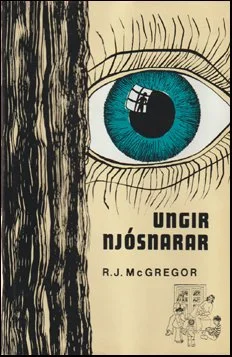 Ef þið sjáið teikninguna af börnunum að ofan sjáið þið líka að þau eru klædd og klippt eins og börn upp úr 1970 þegar ég man fyrst eftir mér. Ef netið hefði aldrei fæðst hefði ég kannski aldrei komist neitt lengra en með hjálp þess hef ég komist að því að bókin er í raun frá 1934 og heitir The Young Detectives sem eins og fólk sem kann ensku sér strax merkir alls ekki að þau séu njósnarar. Höfundurinn hét Reginald James McGregor (1887-1961) og vann sem skólastjóri. Hann er hressilegur höfundur og skrifaði líka leikrit. Ég fann enga mynd af honum á netinu en bókin hefur verið endurútgefin nokkrum sinnum.