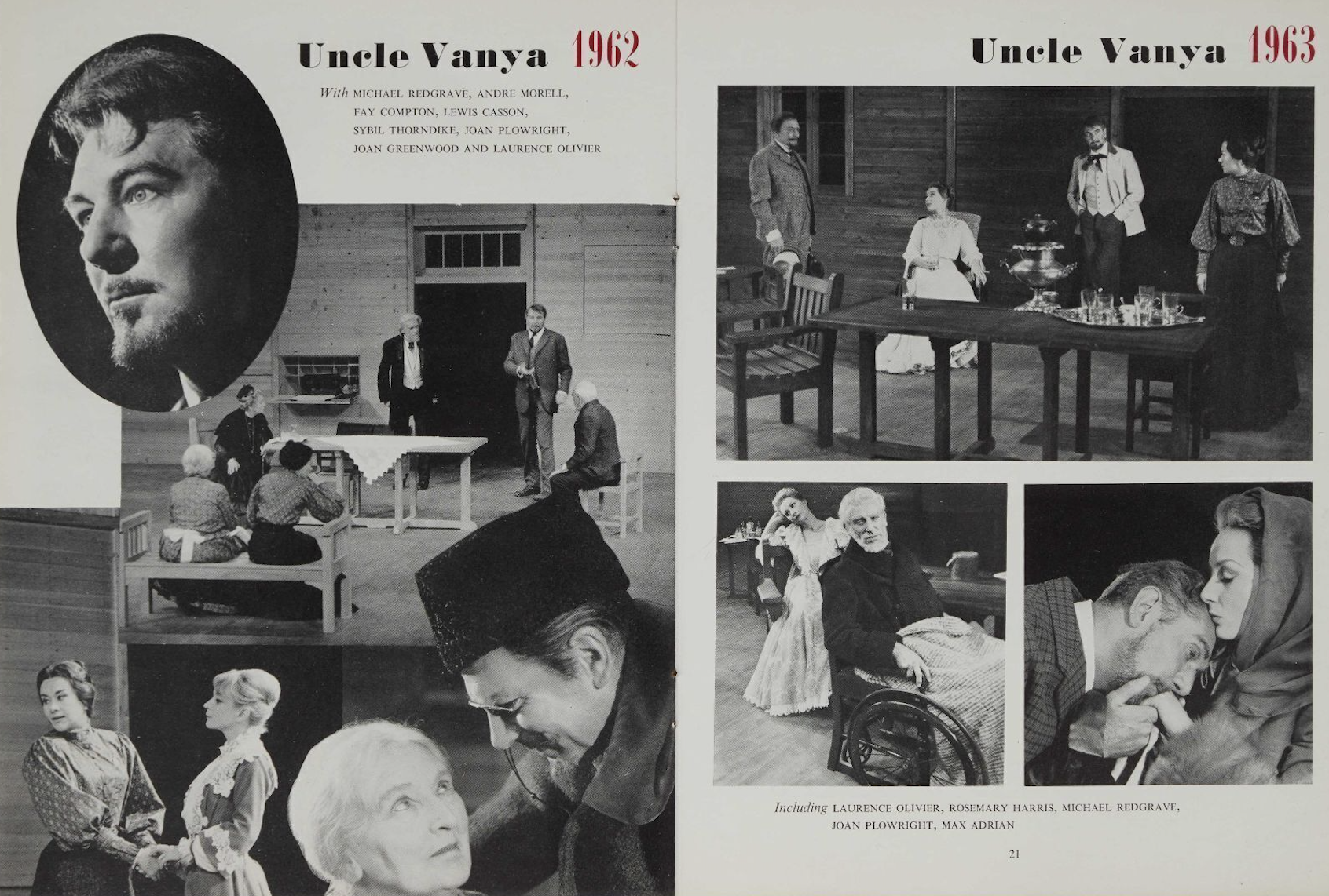 Ég og vinir mínir grufluðum í Vanja frænda í mars, en ég hafði áður séð leikritið í Borgarleikhúsinu snemma árs 2020 og það var líka sýnt árið 1965 í Iðnó. Geir Kristjánsson, Ingibjörg Haraldsdóttir og Gunnar Þorri Pétursson hafa öll þýtt leikinn á ástkæra ylhýra. Ég fann ekki hina frægu sýningu Laurence Olivier frá 1963 (sjá að neðan) en Louis Malle leikstýrði leikgerð David Mamet, Vanya on 42nd Street sem kvikmynd árið 1994. Sú er mjög póstmódernísk í anda Jesus Christ Superstar, við sjáum leikarana á götum New York áður en þeir stíga inn í leikhúsið og leiklesa. Andre Gregory er leikstjóri inni í kvikmyndinni (sem ryðst m.a. inn og tilkynnir hlé) en aðalhlutverkið leikur Wallace Shawn. Þessir þrír störfuðu áður saman að myndinni My Dinner with Andre (1981) sem mér finnst enn merkileg. Wallace er alls ekki óáþekkur því hvernig ég sá Vanja frænda fyrir mér þegar ég las leikritið fyrst fyrir margtlöngu (Toby Jones hefur leikið sama hlutverk)..
